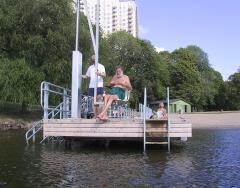 Smedsuddsbadet är en mycket populär badplats vid Rålanbshovsparken, mitt i centrala Stockholm. 2002 byggdes hela badplatsen om för bättre tillgänglighet, med bland annat en ny badbrygga, nya handikapptoaletter, bättre gångvägar, ramp till Café Kajak mm mm. |