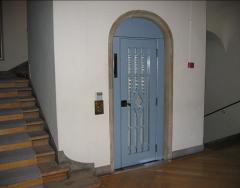 Ombyggnad av huvudentrén mot Hornsgatan med en ny typ av trapphiss infälld i yttertrappan (se bild) och en annan ny typ av trapphiss, framtagen inom Värdig Entré-projektet, infälld i stengolvet inne i foajén. |