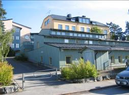 Hemmet för Gamla i Enskede består av två stora byggnader som 1995 byggdes om och till för ett modernt äldreboende med egna lägenheter och gemensamma rum för umgänge och måltider. En ny förbindelsegång förenar de två husen som också innehåller restaurang och terapilokaler. |